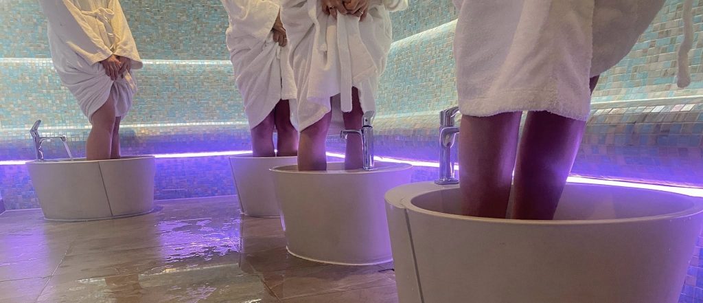 Her undervisning i kulde-varme terapi til bedring af kredsløb og ødemer i ben.